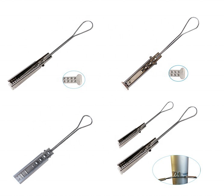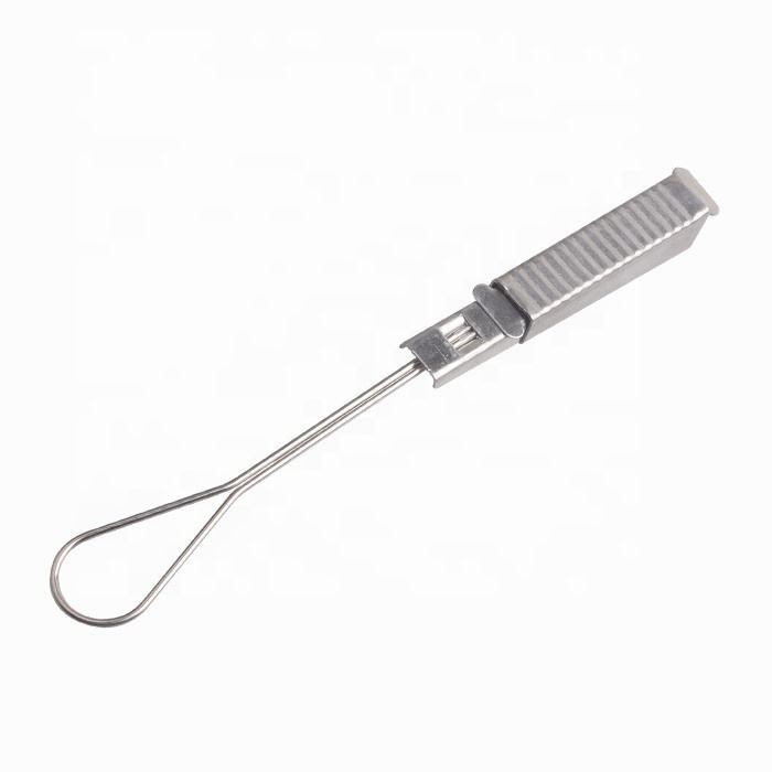 Un tipo de abrazadera de cable, que se utiliza ampliamente para soportar cables de bajada de teléfono en abrazaderas de vano, ganchos de accionamiento y varios accesorios de bajada. La abrazadera de cable de acero inoxidable consta de tres partes: una carcasa, una cuña y una cuña equipada con un cable de asa. Principalmente tenemos dos tipos: abrazaderas de cable de 1 par - 2 pares y abrazaderas de cable de 6 pares. La abrazadera de cable de acero inoxidable tiene varias ventajas, como buena resistencia a la corrosión, durabilidad y economía. Este producto es muy recomendable por su excelente rendimiento anticorrosión. Además, además de las abrazaderas de cable de acero inoxidable, también podemos producir abrazaderas de cable de bajada de hierro inoxidable. Nuestros productos de abrazaderas de cable están disponibles en varios materiales y longitudes. Todos se pueden personalizar según sus requisitos específicos.