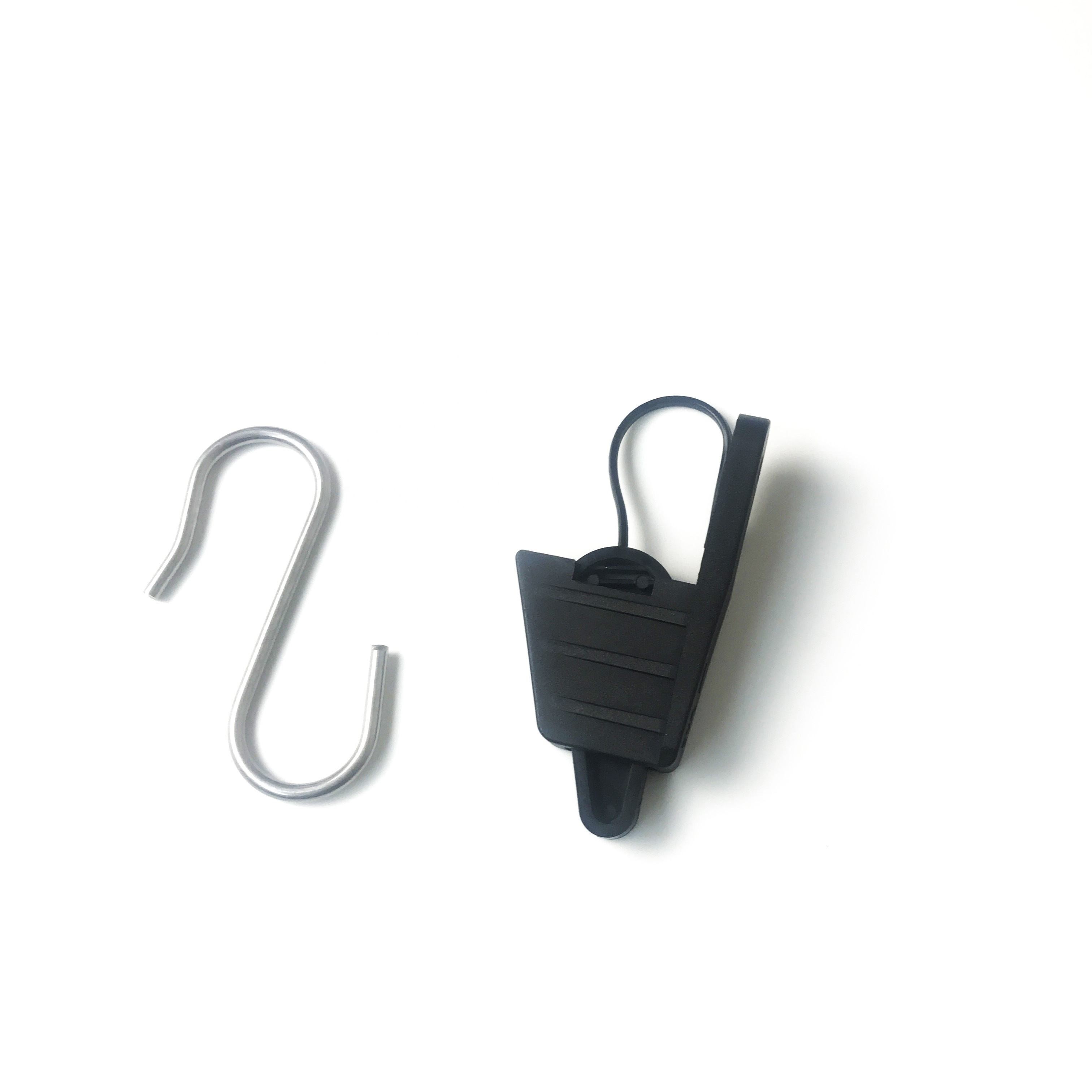 La abrazadera del descenso de FTTH es muy fácil para la instalación, y no requiere las herramientas adicionales, metal práctico ajustado S-hoook permite la instalación simple en los soportes del cruz-brazo o de la suspensión y los ganchos de FTTH, también.